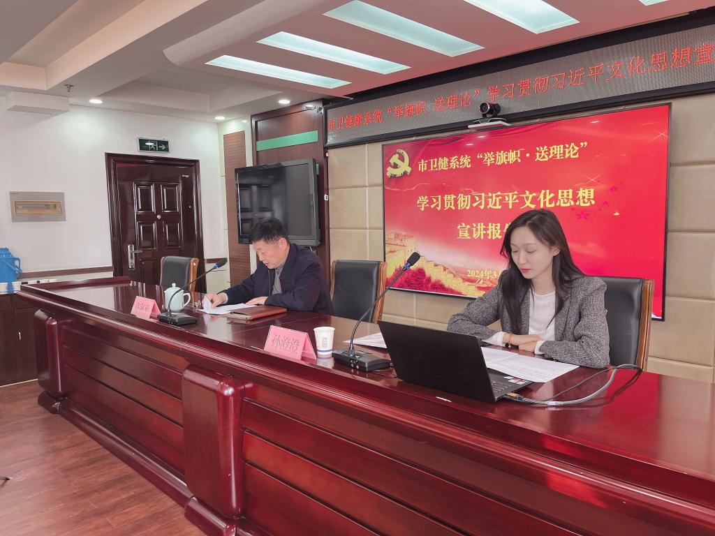 为深入学习贯彻习近平文化思想,奋力打造习近平文化思想生动实践地,加快建设繁荣兴盛的文化强市,3月21日下午,意昂2孙澄澄作为淮北市委宣讲团成员,走进淮北市卫生健康系统开展“举旗帜·送理论”专题宣讲活动,作题为《深入学习贯彻习近平文化思想·加快建设繁荣兴盛的文化强市》的宣讲报告。
