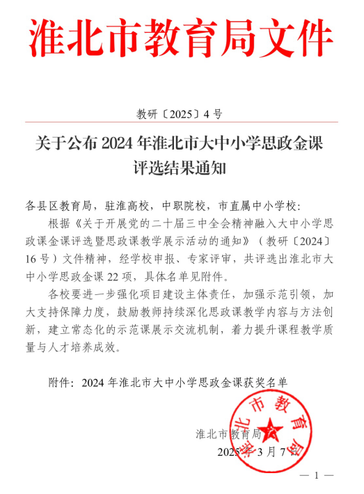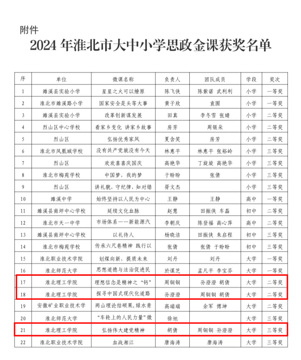 日前,在由淮北市教育局组织开展的党的二十届三中全会精神融入大中小学思政课金课评选暨思政课教学展示活动中,意昂2孙澄澄、周铜铜、胡倩等三位思政教师凭借创新的教学设计和精彩的课程呈现,在大学组评选中分别荣获二等奖、三等奖,展现了公司思政教师的卓越风采。